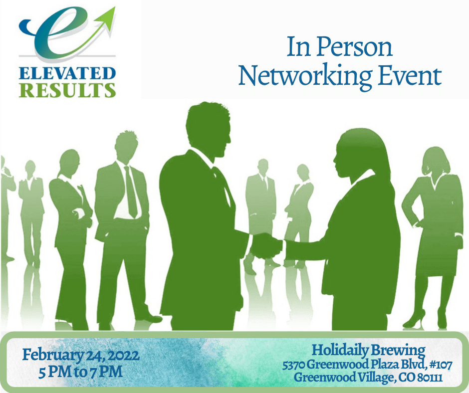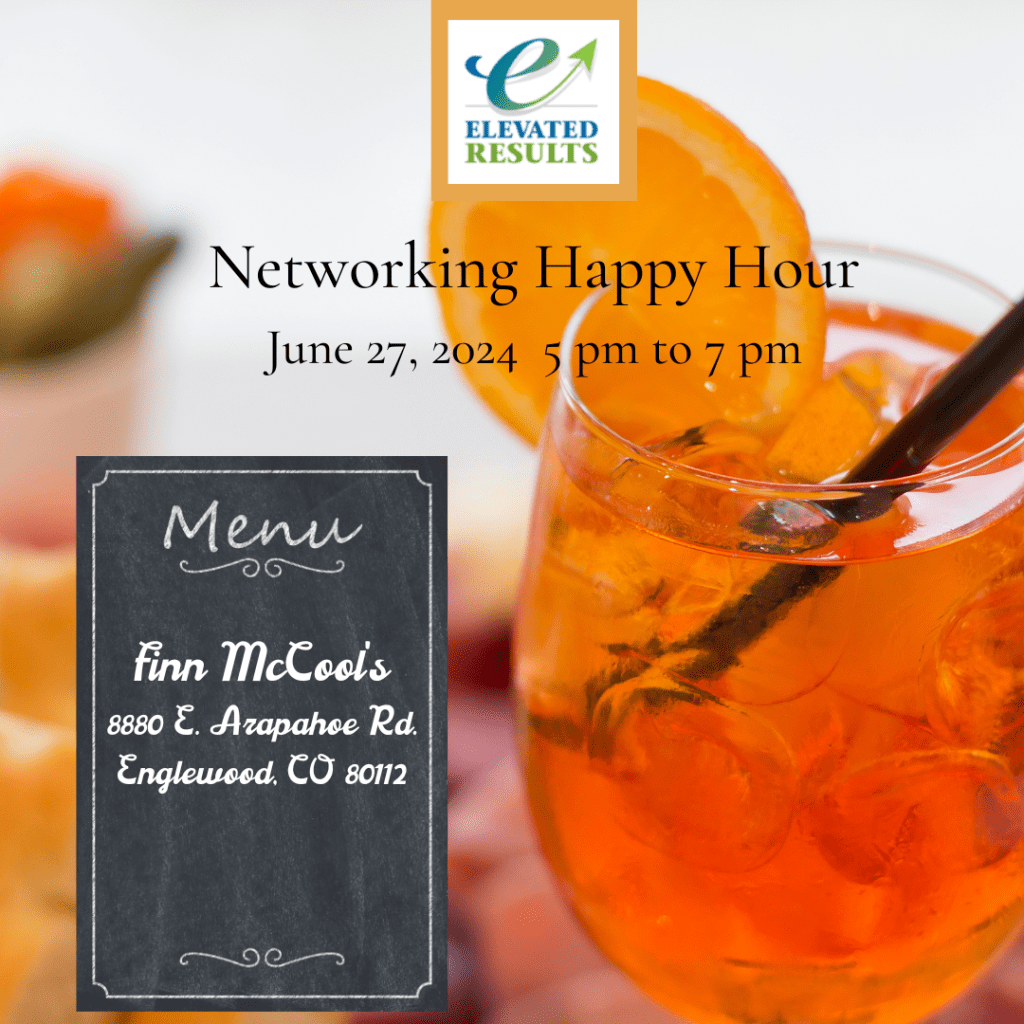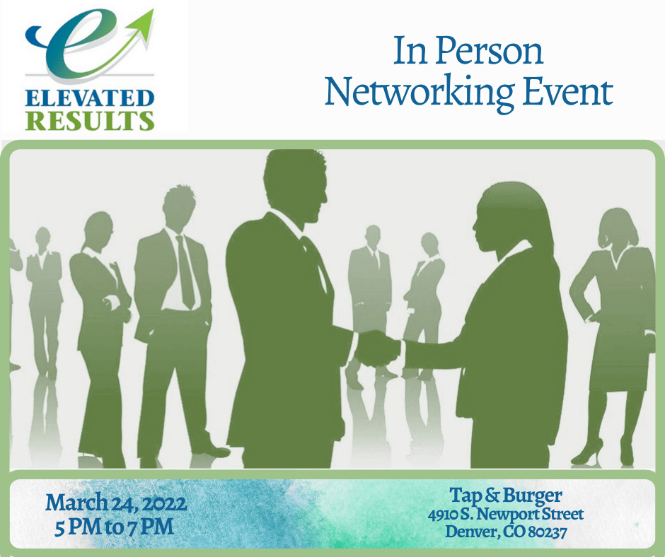 We would like to invite you to our Elevated Results Networking Happy Hour on Thursday, March 25, 2021, 4:30pm – 6:00pm via Zoom.