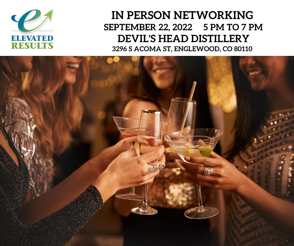 Elevated Results will provide our guests with appetizers and a drink ticket (or two). Please check in with us upon arrival to receive your drink ticket. Don’t forget your business cards!