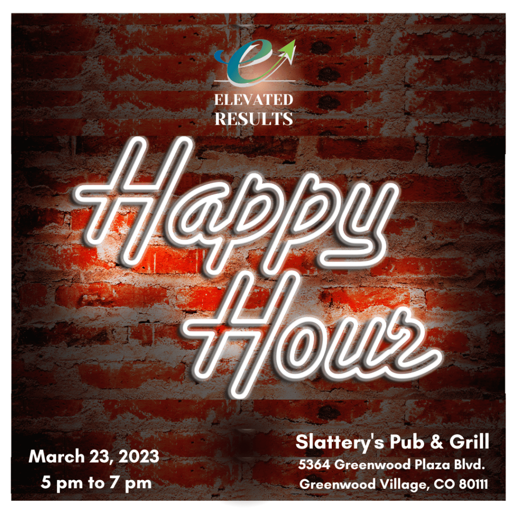 Join Elevated Results for happy hour! We will be at Slattery’s Pub & Grill on Thursday, March 23rd, from 5pm to 7pm.